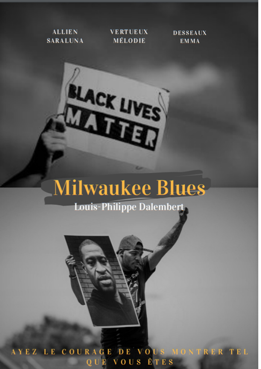 En Première G4, au Lycée Jean Moulin de Pézenas (34, Hérault), a été conçue une affiche pour le roman de L. P. Dalembert, Milwaukee blues : toute la force du roman s’y traduit !