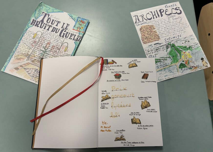Voici des photographies de la production littéraire et artistique réalisée, dans le cadre du Prix Goncourt des Lycéens, par les 1HLP du Lycée François 1er à Vitry le François.